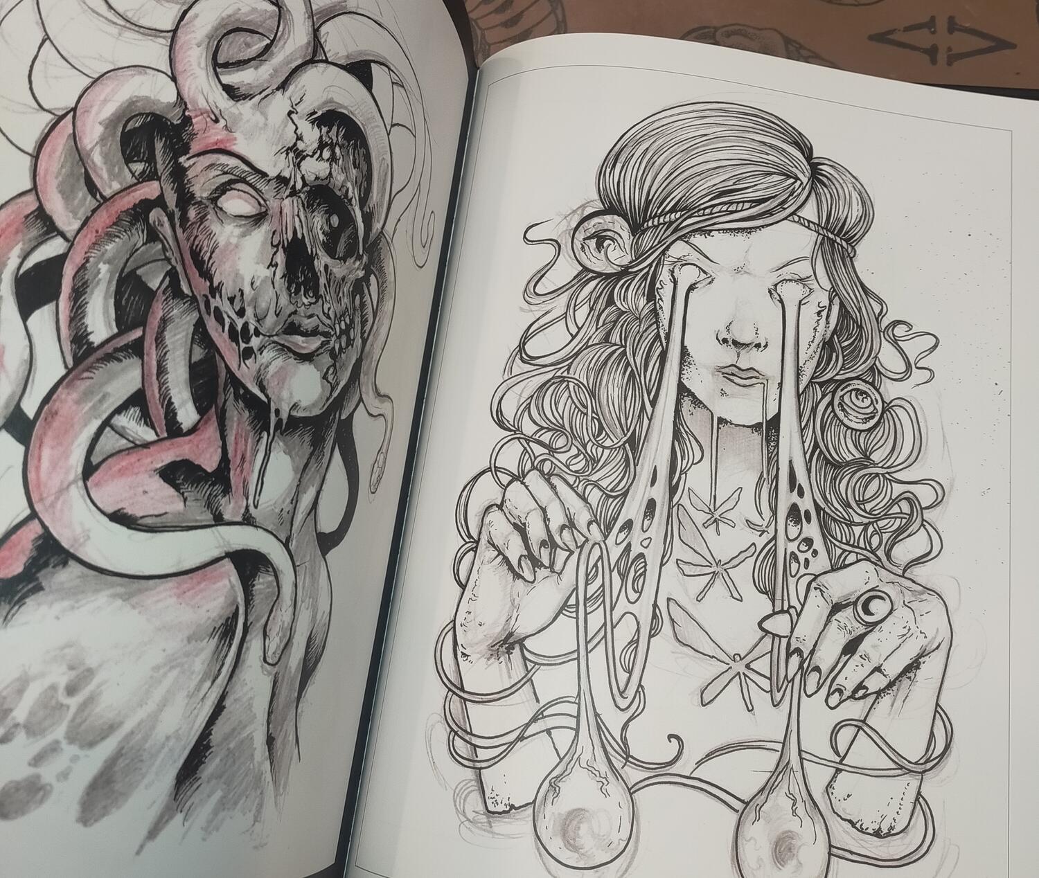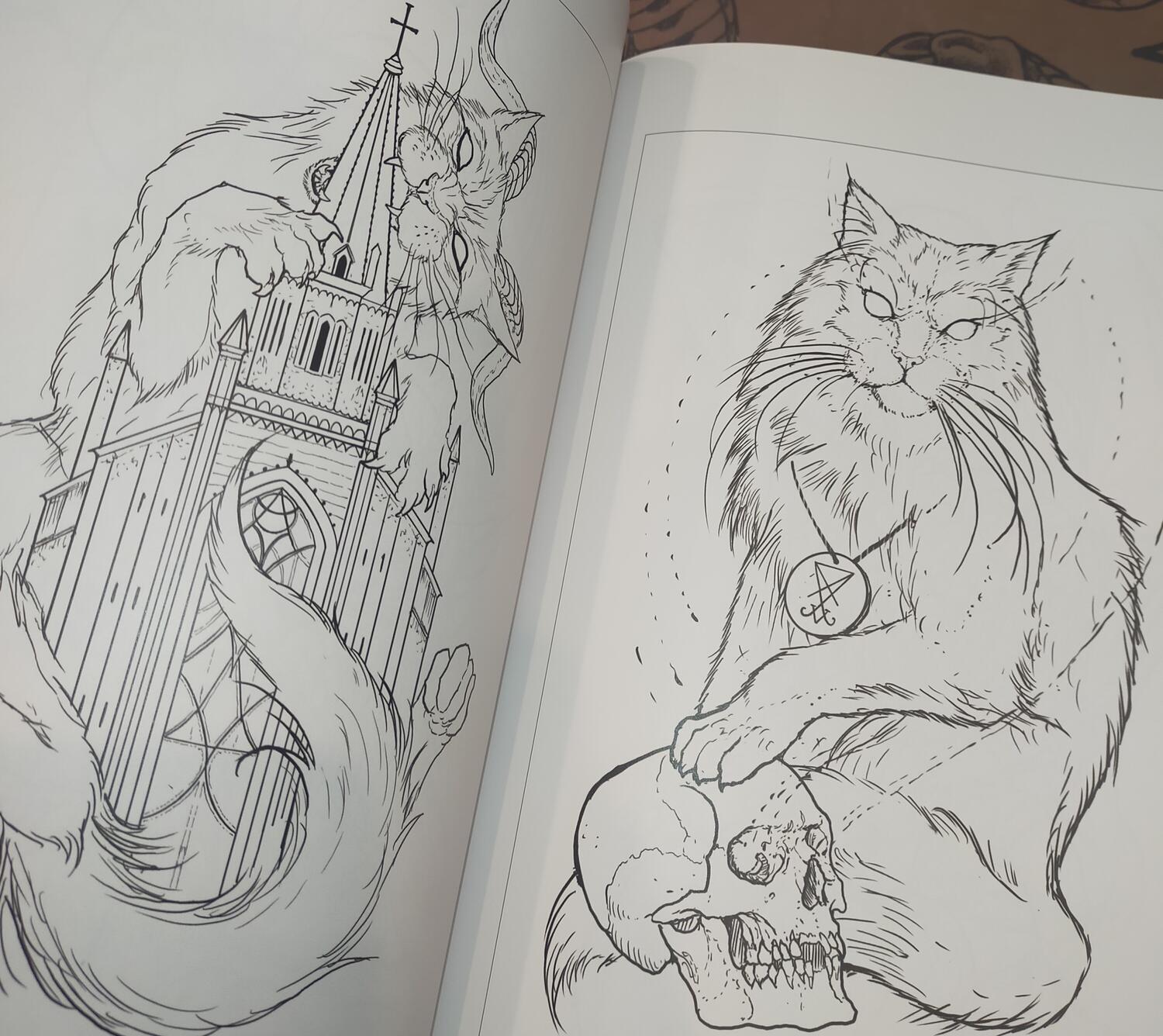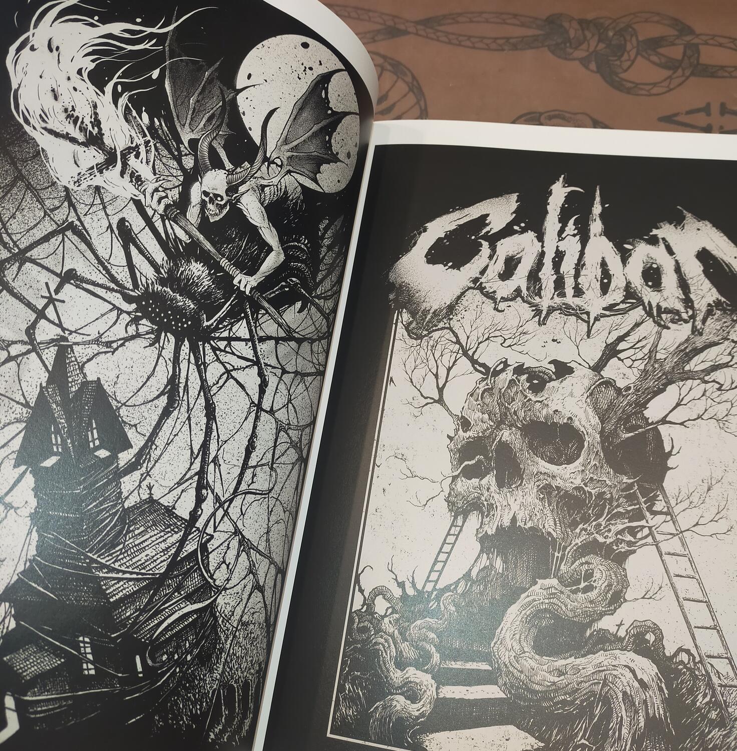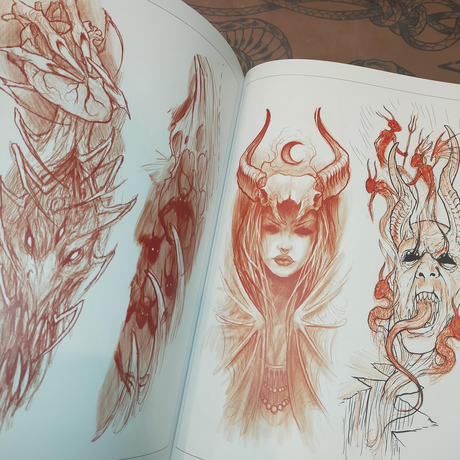 Withover 285 pagesincludinglinework, sketches, and graphic imagery– many of which have become iconic album covers for metal bands – INCUBUS delves into the world of classic subjects such as demons, skulls, crosses, goats, and irreverent religious iconography. These are joined by the evil spirits that define his visual language and bring to life his very ownLidérc– his nightmare.